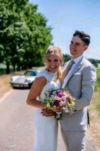 Wat dit huwelijk zo bijzonder maakte, was de eenvoud en authenticiteit. Geen overdreven glitter van glamour, maar een warme zomerdag waarop alles klopt. Sarah straalde in haar elegante witte jurk met fijne kanten details, terwijl Wout in een lichtgrijs pak perfect tot zijn recht kwam. Samen vormen ze een beeld dat rechtstreeks uit een romantische film lijkt te komen.